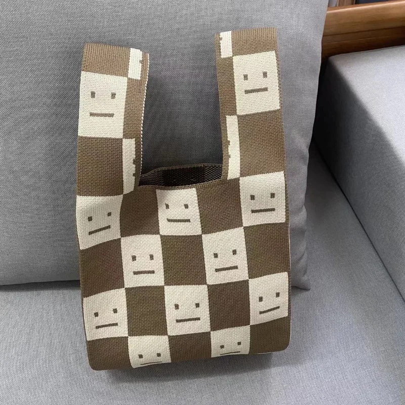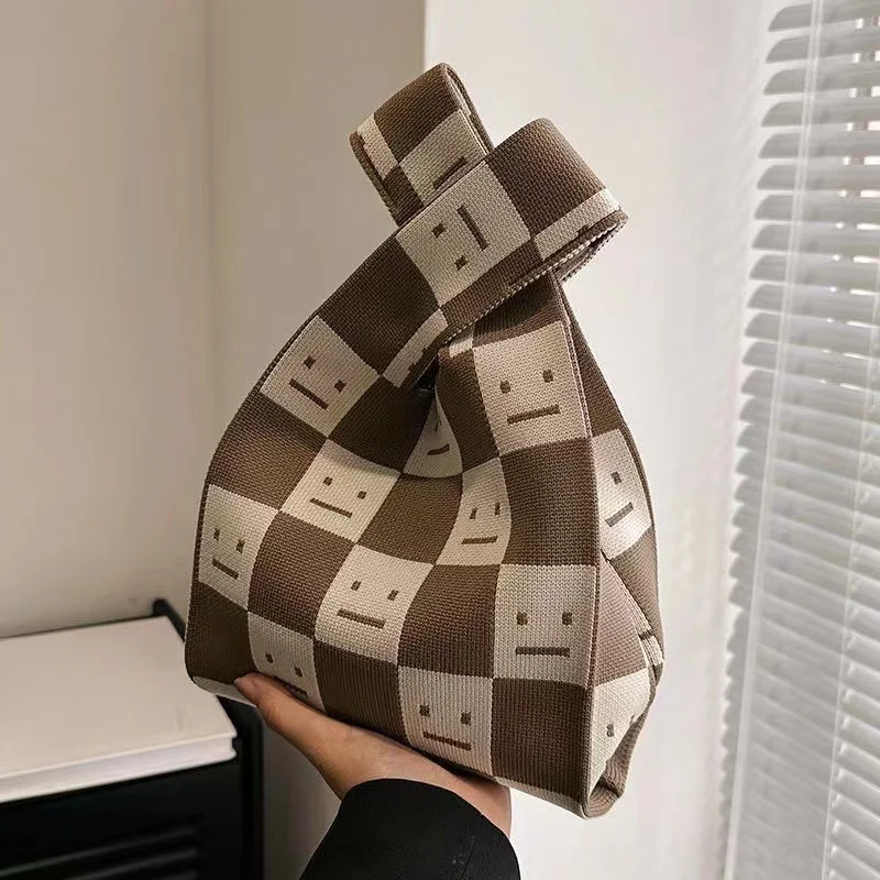 Fashion Plaid Knitted Tote Bag, Trendy Crochet Hobo Bag, Women’s Casual Handbag & Purse